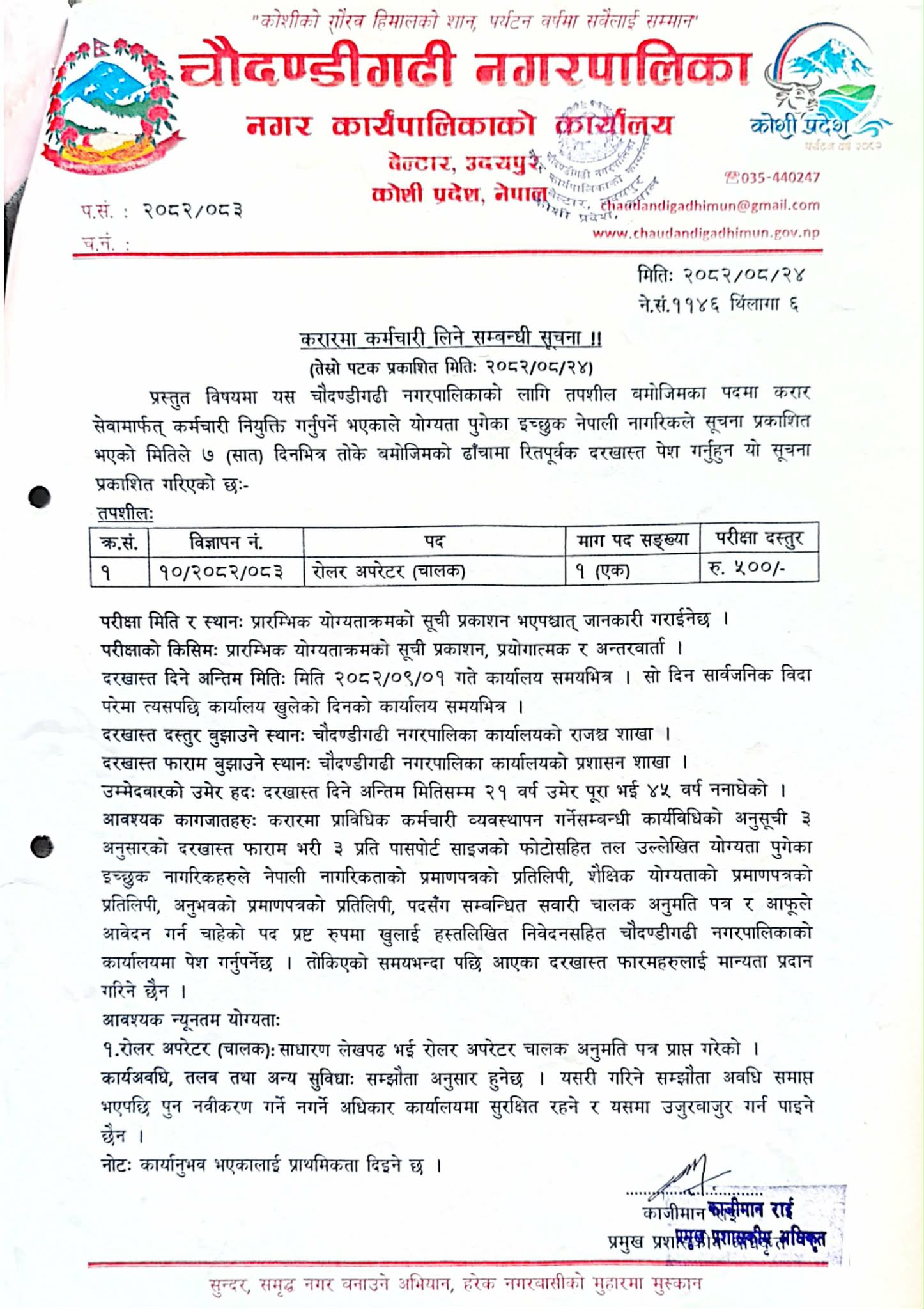 करारमा कर्मचारी लिने सम्बन्धी सूचना !! (तेस्रो पटक प्रकाशित मितिः २०८२/०८/२४)