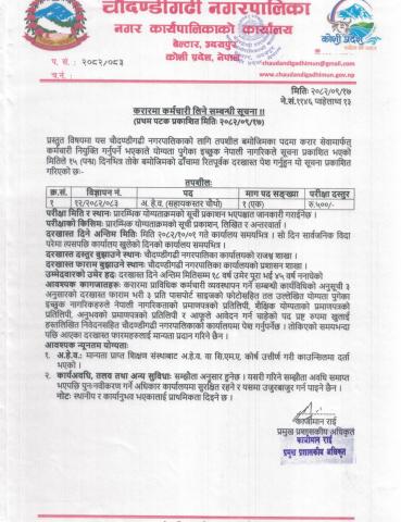 करारमा कर्मचारी लिने सम्बन्धी सूचना !! (प्रथम पटक प्रकाशित मितिः २०८२/०९/१७)