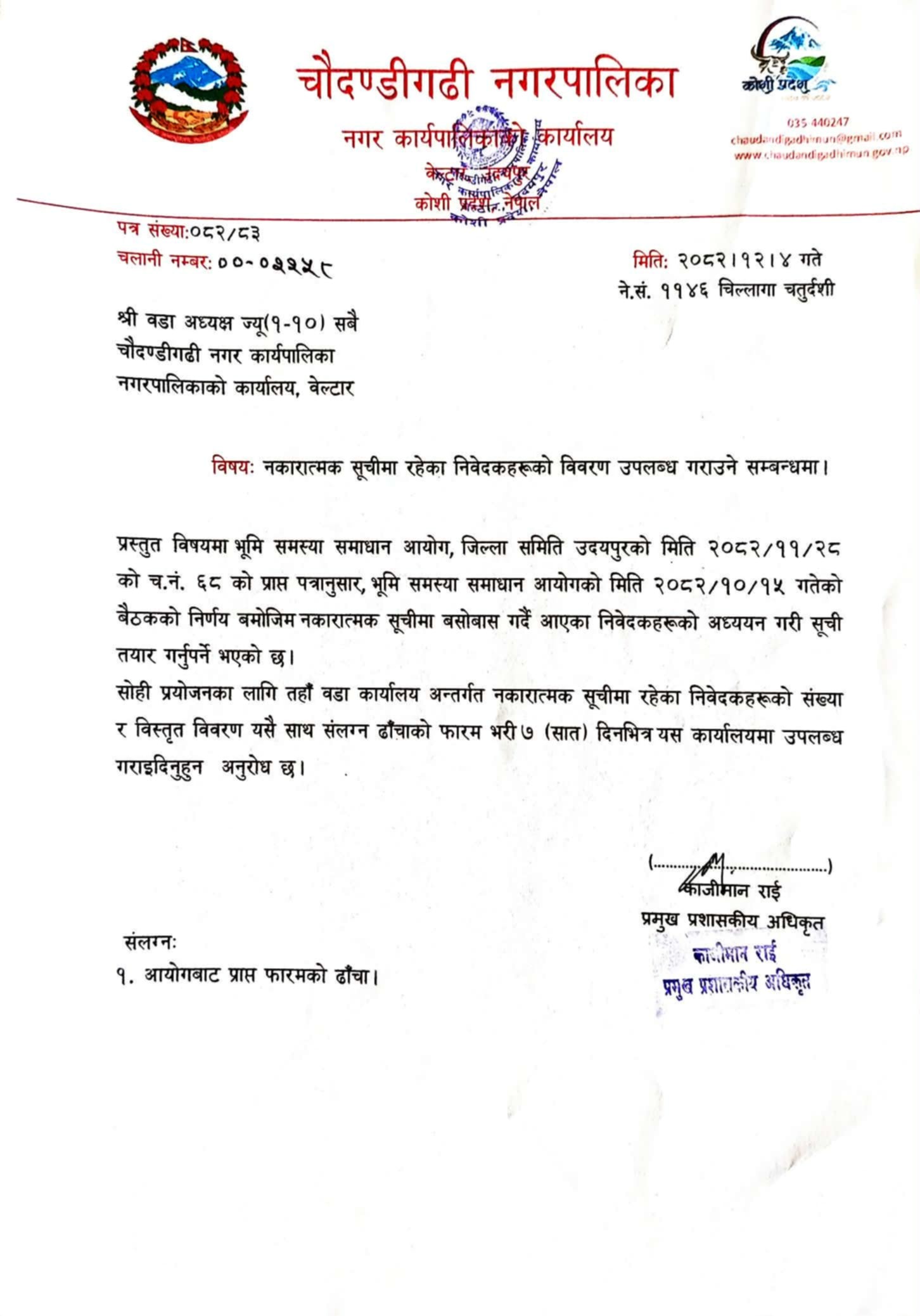 नकारात्मक सूचीमा रहेका निवेदकहरूको विवरण उपलब्ध गराउने सम्बन्धमा।