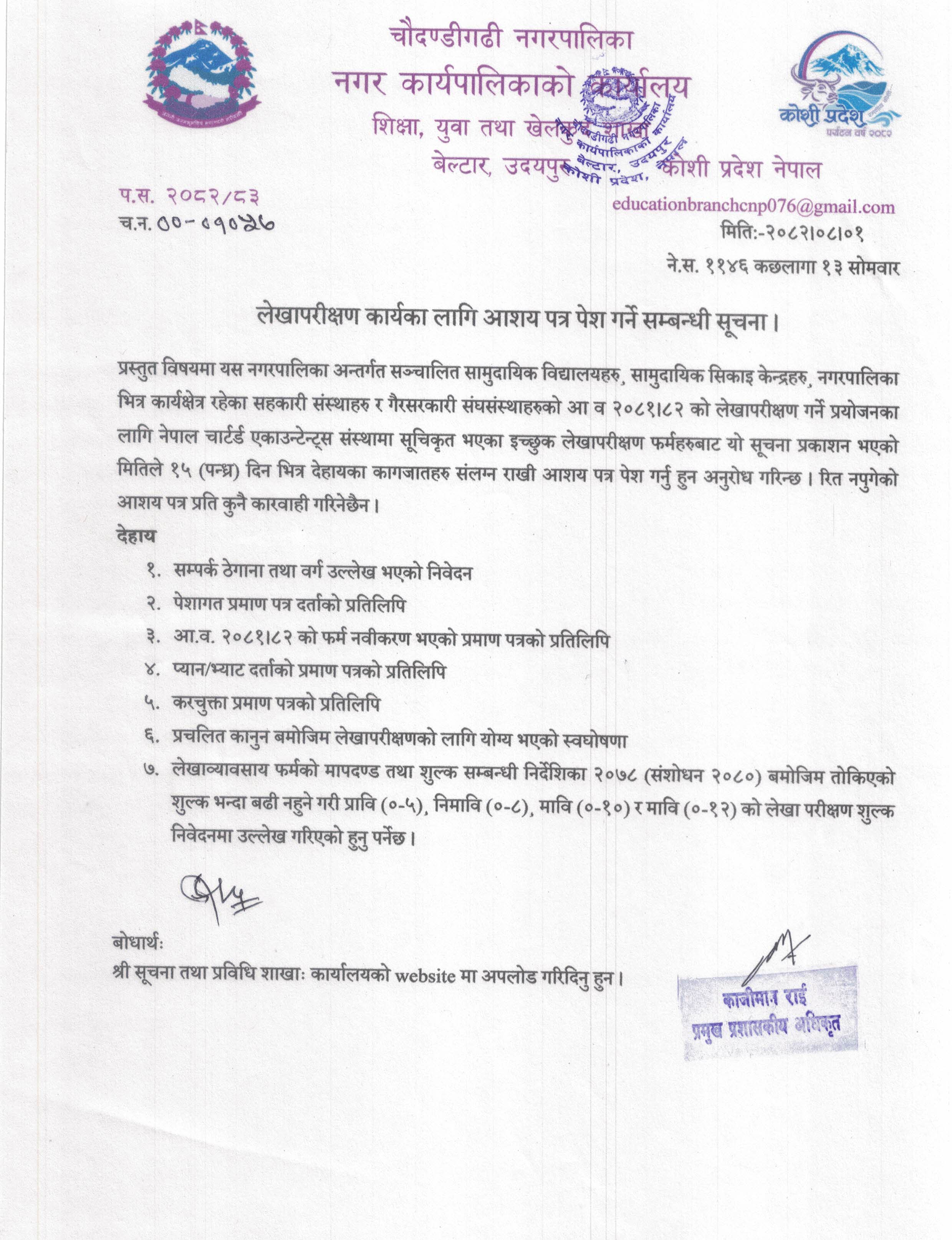 लेखापरीक्षण कार्यका लागि आशय पत्र पेश गर्ने सम्बन्धी सूचना।