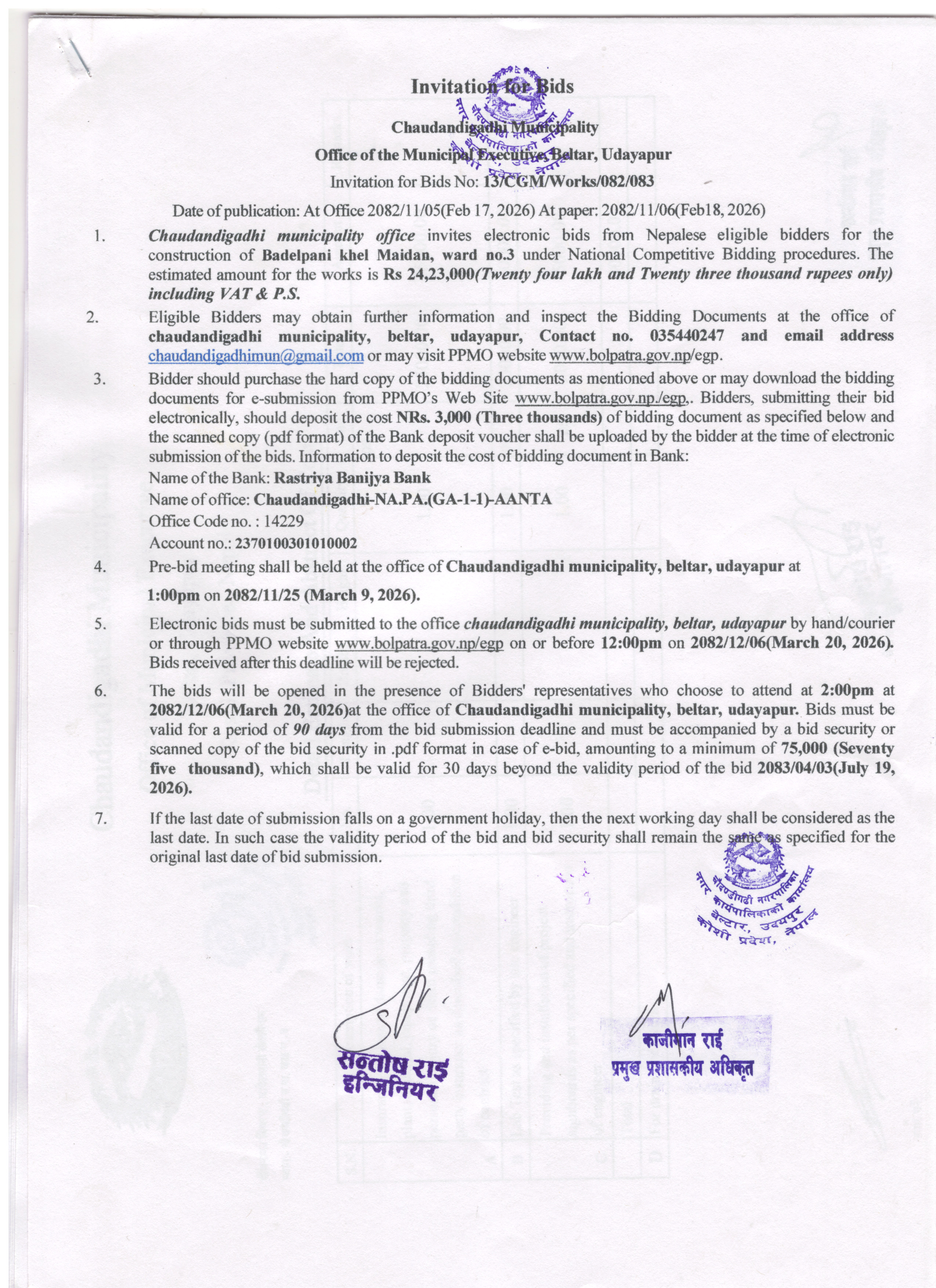 सार्वजनिक खरिद/बोलपत्र सूचना