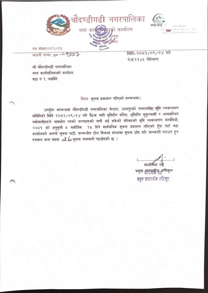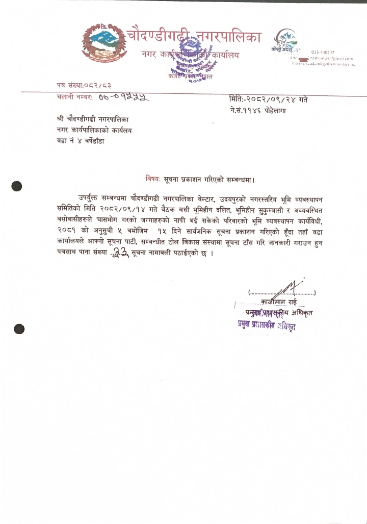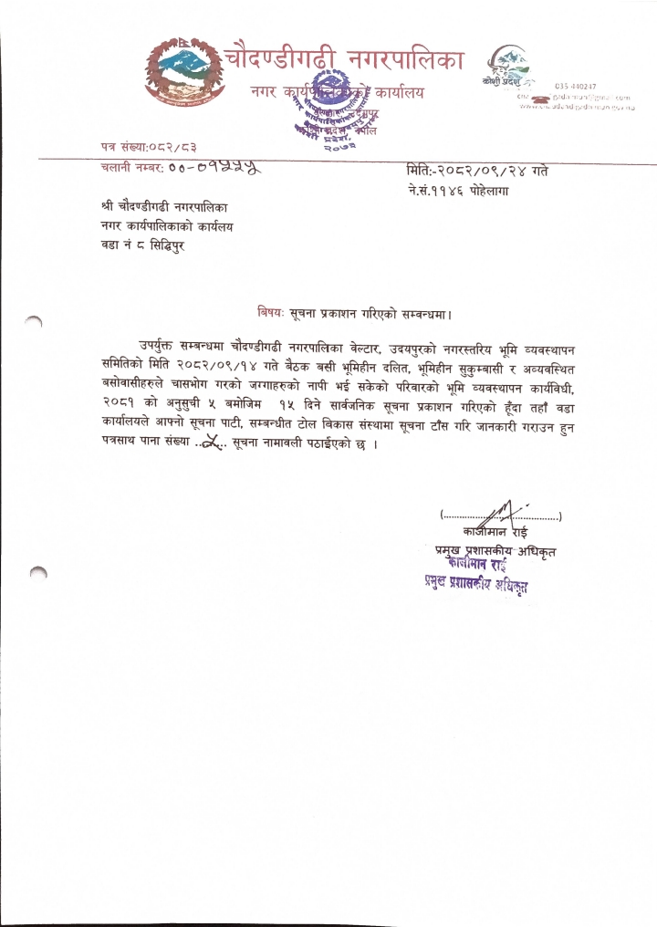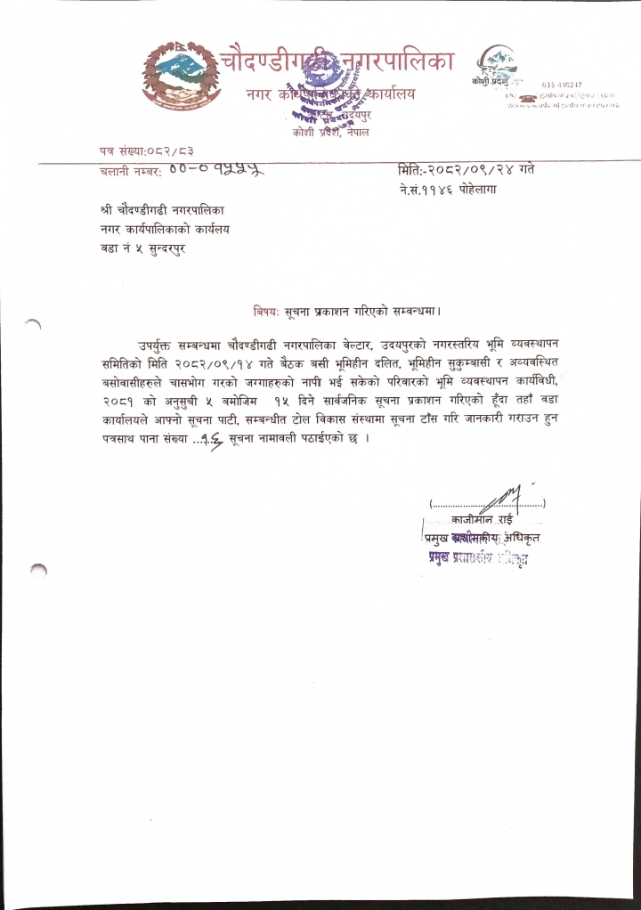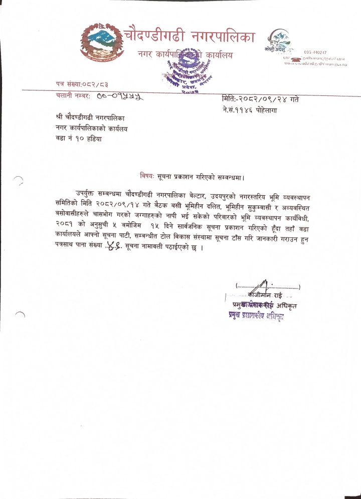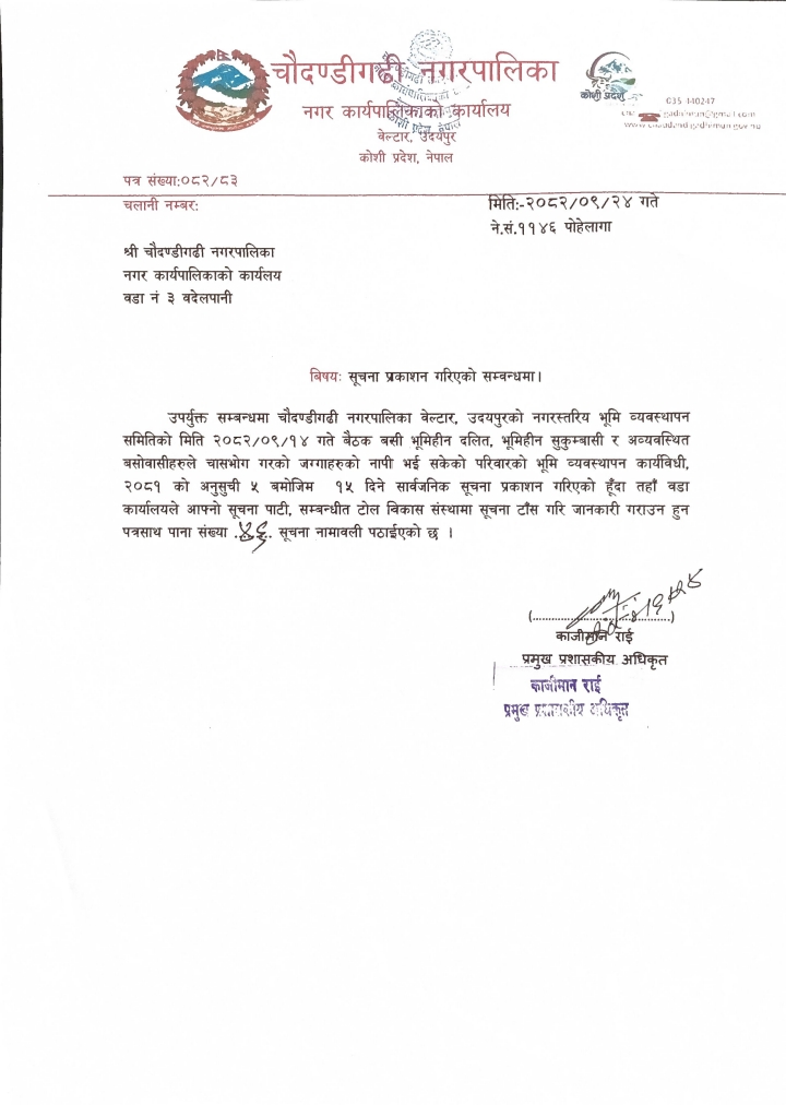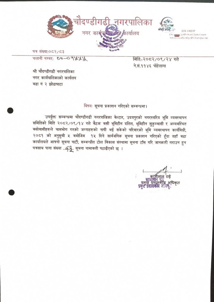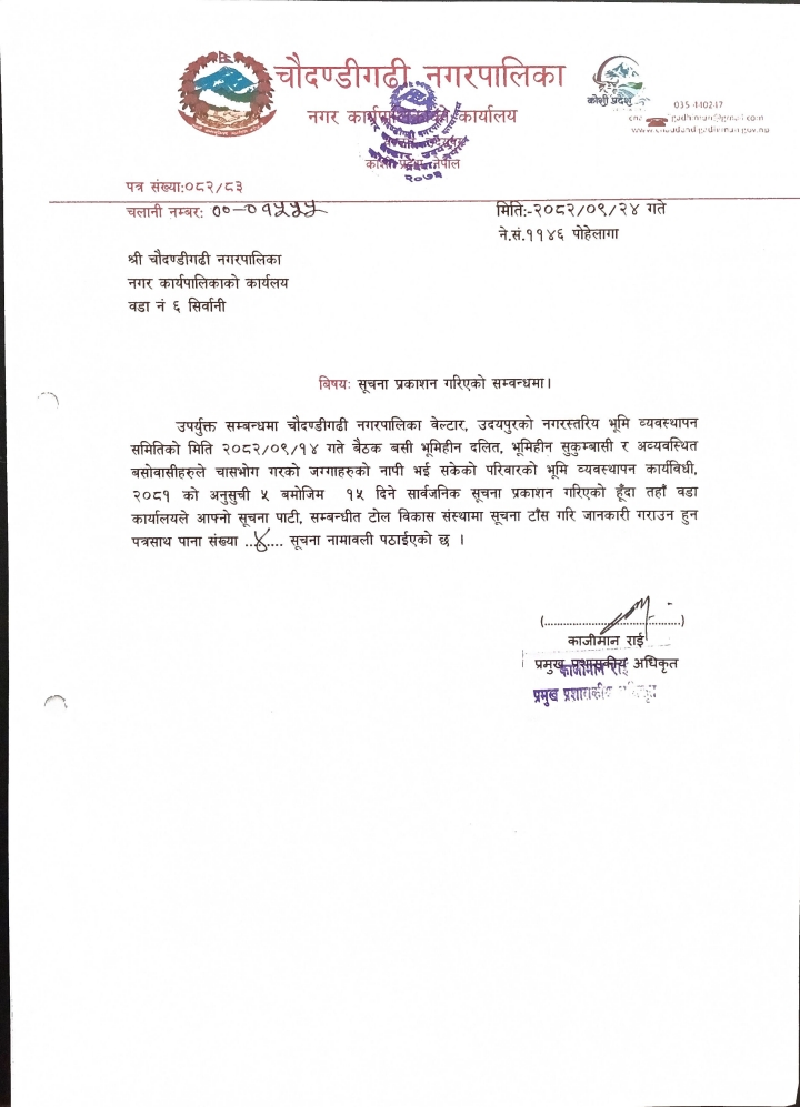 चौदण्डिगढी नगरपालिकाको नागरिक वडा पत्र २०८१/०८२