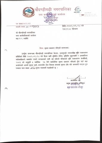 चौदण्डीगढी नगरपालिका वडा कार्यालयहरुको नागरिक वडापत्र