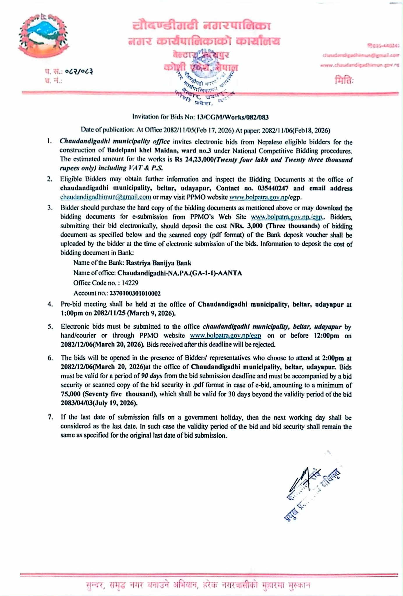 सार्वजनिक खरीद / बोलपत्र सूचना