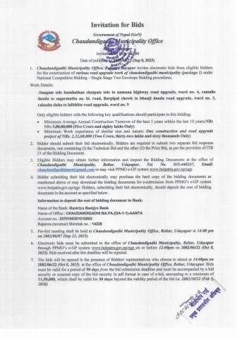 Home » Invitation For Bids ( बोलपत्र आव्हानको सूचना )।