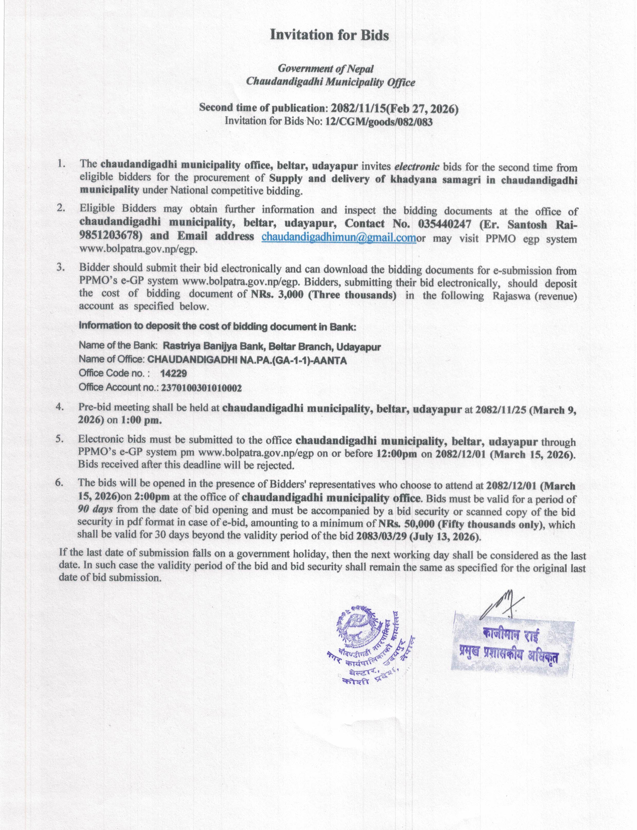 सार्वजनिक खरीद / बोलपत्र सूचना