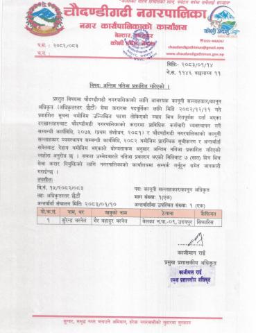 चौदण्डिगढी नगरपालिकाको नागरिक वडा पत्र २०८१/०८२