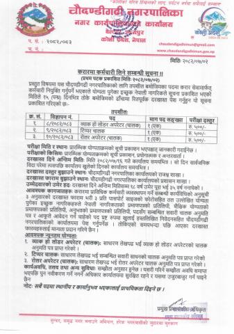 करारमा कर्मचारी लिने सम्बन्धी सूचना !!