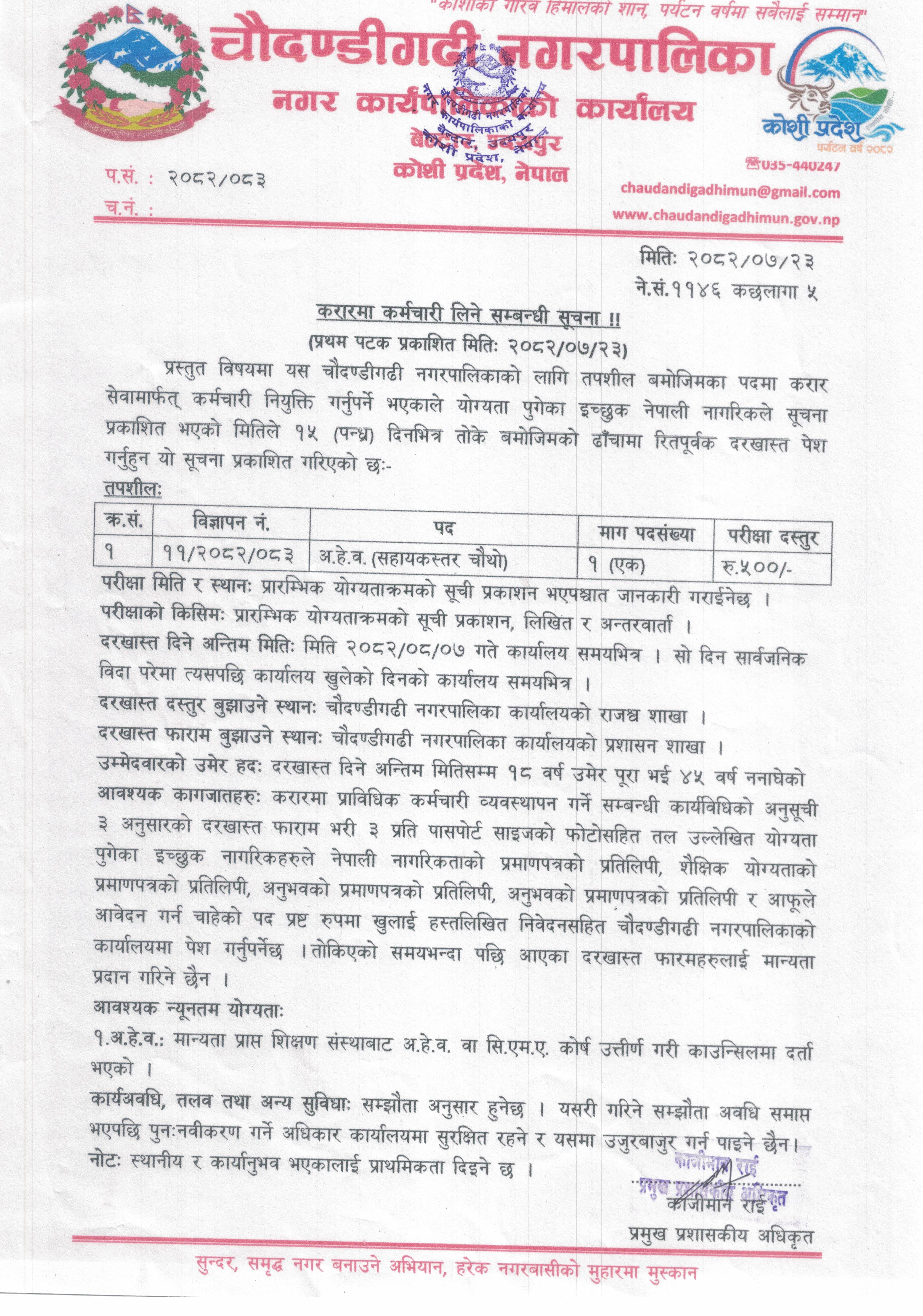 करारमा कर्मचारी लिने सम्बन्धी सूचना !!