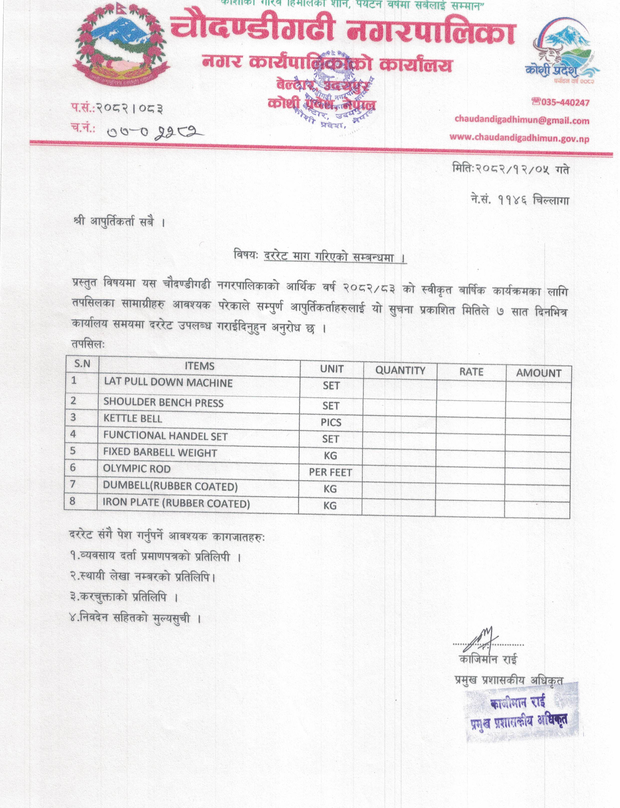 दररेट माग गरिएको सम्बन्धमा ।